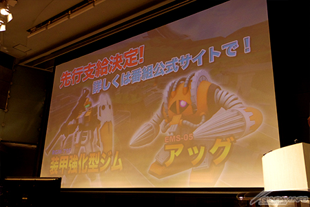 此外,當天也發表了新MS,公開了地球連邦軍將追加「装甲強化型吉姆」、吉翁公國軍則是追加「亞克」。