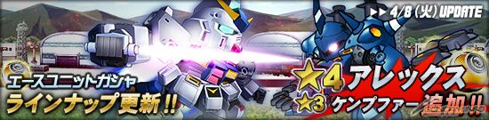 並在王牌機體轉蛋中追加「★4 亞雷克斯」跟「★3 肯普法」。