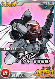 打倒「克魯澤駕駛的天帝鋼彈」的時候可以抽機會轉蛋S,除了有機會獲得「★3 迪因(克魯澤專用機)」以外,王牌機體轉蛋中追加可以對「克魯澤駕駛的天帝鋼彈」發揮6倍攻擊力的「★2 翔翼型攻擊鋼彈」。