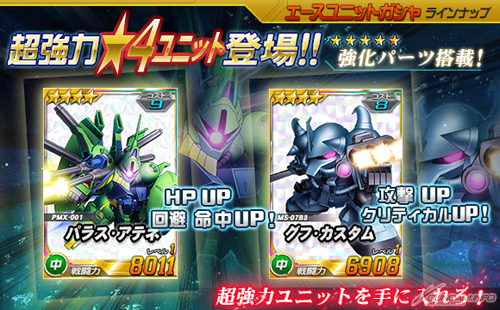 王牌機體轉蛋中新追加「★4帕拉斯‧雅典娜」、「★4 古夫特裝型」2台機體,都是搭載強化零件的強力機體。