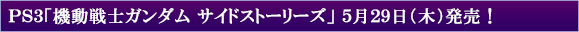 機動戰士鋼彈 SIDE STORIES 發售日 : 2014年5月29日預定 價 格 : 通常版 7,600日圓+稅/ 限定版「Limited Edition」13,790日圓+稅 遊戲類型 : 劇情&高速動作遊戲 對應機種 : PlayStation®3 玩家人數: 1人 CERO : A 開 發 : B.B.STUDIO |