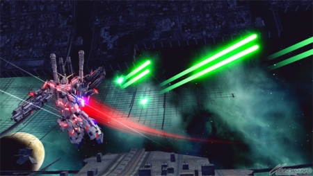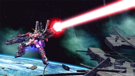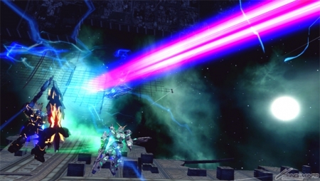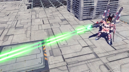 ▲特殊射擊武裝是使用「MEGA光束砲」發射照射光束。可以控制搖桿使光束轉向。