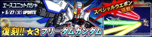 王牌機體轉蛋中「★3 自由鋼彈」重新登場。「★3 自由鋼彈」是搭載特別武裝「HiMAT模式(高機動空戰模式)全面爆發」的強力機體,請一定要獲得。