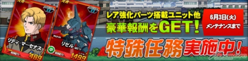 今天起開始到6月3日(二)為止的限定期間內,特殊任務「OP晶片奪還作戰」開始了。活動期間中,只要將限期地圖破關就可以獲得「★2 利迪.馬瑟納斯」及「★2 里歇爾(MS)」等強力報酬。快來挑戰任務獲得報酬吧。