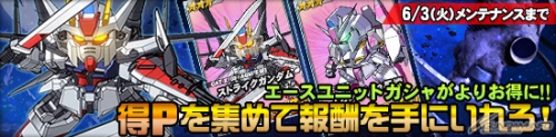 同樣從今天起到6月3日(二)為止,將限期舉辦「得P活動」,依據抽取「王牌機體轉蛋」及「11連王牌機體轉蛋」時可以獲得的點數(得P)合計値,能夠獲得各種報酬。累積「得P」,來換取「★3 攻擊鋼彈I.W.S.P」以及「★3 Ζ鋼彈3號機」等豪華報酬吧。