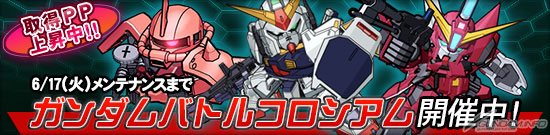 從今天6月10日(二)起到6月17日(二)止的限定期間內,同時也將舉辦「鋼彈鬥技場」和「獲得PP增量活動」。