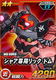 而王牌機體轉蛋中則追加可以對「阿姆羅駕駛的G-3鋼彈」發揮6倍攻擊力的「★2 夏亞專用里克・德姆」。