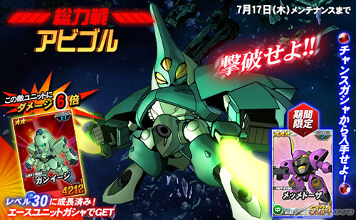 由BANDAI NAMCO ONLINE在「Yahoo!遊戲」上推出、現正好評營運中的免基本費網頁遊戲「SD GUNDAM OPERATIONS」,自今天7月3日(四)起展開的總力戰中,「亞畢戈」將會登場。