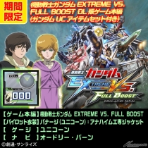 | 機動戰士鋼彈 EXTREME VS. FULL BOOST 發售日 : 好評發售中 價 格 : 7,980日圓(下載版7,980円) 對應機種 : PlayStaiton3 類別 : 小隊戰鬥動作遊戲 玩家人數: 1~2人 (線上 1~4人) CERO : B |