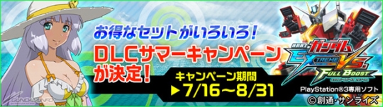 由BANDAI NAMCO GAMES好評發售中的PS3専用遊戲「機動戰士鋼彈 EXTREME VS. FULL BOOST」,7月16日(三)起開始舉辦限期夏季特惠活動,可以買到各種發售中DLC超值套組。