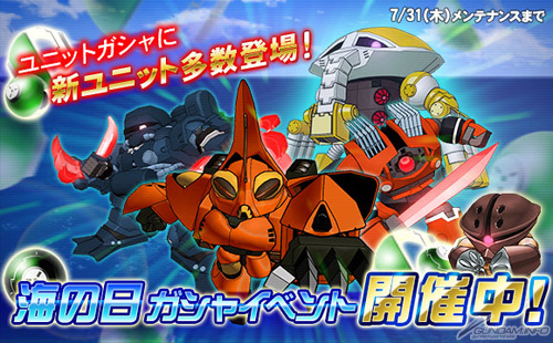今天起到7月31日(四)止限期舉辦的「海洋之日轉蛋活動」舉辦期間內,「機體轉蛋」和「駕駛員轉蛋」的內容將會大幅變更,有許多和海洋之日關聯的新機體登場。