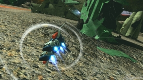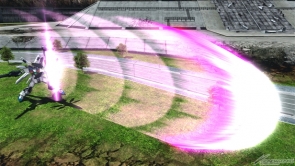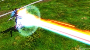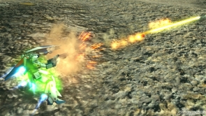 ▲集氣射擊是使用武裝裝甲DE的MEGA加農來發射照射光束。可以輸入方向鍵來改變軌道。