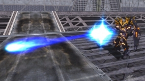 ▲集氣射擊的光束發射器,是發射後可輸入方向鍵來改變軌道的照射光束。雖然EX爆發時會變得沒辦法彎,但是可以和磁軌砲與機關砲一齊射擊。