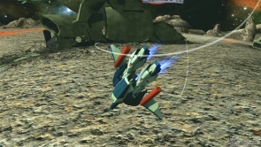 ▲特殊射擊「特殊移動」是將武裝戰甲DE裝在背上,向敵機高速移動。