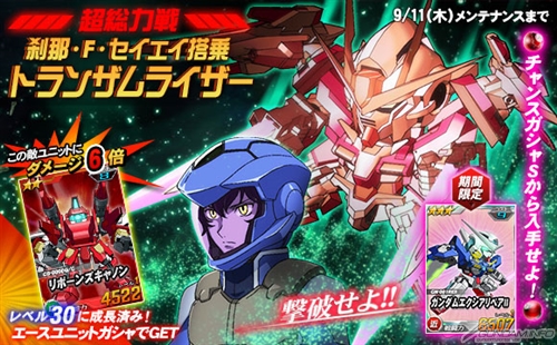 這次的超總力戰中,「刹那搭乘TRANS-AM RAISER」將會登場。活動期間到到9月11日(四)止,這段期間進行任務時將有機會跟「刹那搭乘TRANS-AM RAISER」交戰。