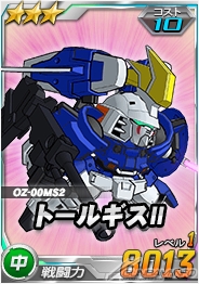 王牌機體轉蛋也在今天更新了商品內容,共有「★4 托爾吉斯」、「★3托爾吉斯II」等機體登場。而白金駕駛員轉蛋也追加了「「★3 特列斯・克休里納達」。