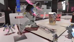本作中除了有重現原作舞台的關卡外,也有許多遊戲原創的場景模型關卡登場。這次公開的「GUNDAM Café關卡」中,重現大家都很熟悉的秋原店內部,可以來打一場在桌子上橫衝直撞的鋼彈模型戰鬥。活用高低差在這個小小世界裡存活下來吧!
