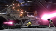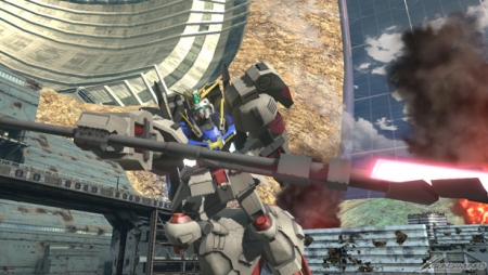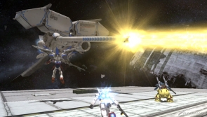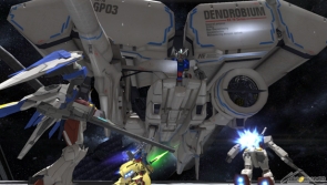 以敵機身份登場的巨大鋼彈模型「石斛蘭」,不但有戰艦級的超級光束砲和大型集束導彈、光束軍刀等強力武器,還會展開連玩家所站地面都破壞的爆炸性戰鬥。