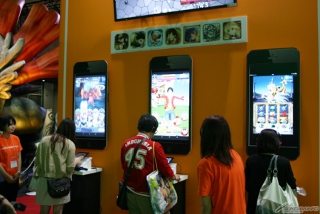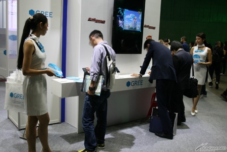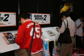 ▲在GREE的攤位上,可以搶先試玩到現正受理事前登錄中的社群遊戲「鋼彈SPIRITS」!