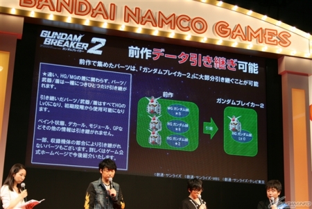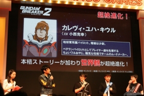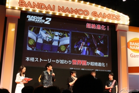 首先上映了「鋼彈破壞者2」的最新PV,本作的主題曲是由「BACK-ON」主唱的「Silent Trigger」,並發表本作中實際可操縱的鋼彈模型有100架以上。此外,也公開這次的遊戲中首次有正式的劇情在,而在故事當中出現的原創角色則是由本次活動的來賓小西和阿部所飾演。