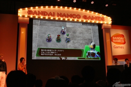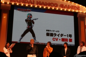 因為大魄力的片頭動畫而整個high起來的會場,接著公開了由稻田飾演的「假面騎士1號」,以及置鮎飾演的「加萊佐」、「恩普拉斯」,並一邊試玩遊戲並且介紹每個角色的戰鬥畫面。而且也實際看到本作特色所在的「技能」、「CHANCE STEP」等系統,以及「BREAK SESTYM」及「SECRET SHOCK」。