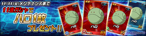 活動期間中,只要來抽11連王牌機體轉蛋,除了可以獲得11張機體卡片外,還能額外拿到1張「★1」或是「★2」的哈囉(近 or 中 or 遠)。