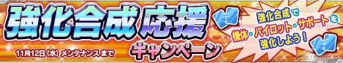 到11月12日(三)維修開始前的活動期間內,進行機體、駕駛員、輔助卡片強化合成時,獲得的稀有度經驗值將會是平常的2倍。但以哈囉和強化轉蛋獲得的經驗値則不列入活動對象內。