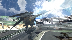 ▲迅速的連撃可以讓敵人連反撃機會都找不到!因為是超近戰的武器,當被敵人擋下時有可能會陷入苦戰!?按下「△」鈕可以和敵機一起飛上空中!在空中一口氣使出連續攻擊!