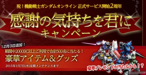 詳細資訊請到「機動戰士鋼彈Online 2周年紀念活動網站」上查看。