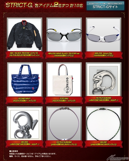 以『機動戰士鋼彈』為設計概念的服飾品牌「STRICT-G」,有9項商品將分別送出2個名額。