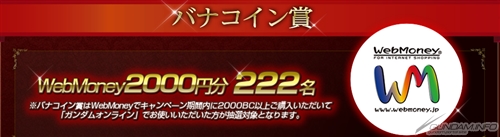 本項是針對在活動期間中利用「WebMoney」購買2,000BC以上BANA-COIN,並在由戲中使用2,000BC以上的玩家所準備的獎項,將送出相當於2,000日圓