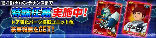 除此之外,王牌機體轉蛋也追加了「★4 剎帝利」和「★3 獨角獸鋼彈(NT-D)」等強力機體;而特殊任務「OP晶片奪還作戰」等3項活動也同時舉辦中。