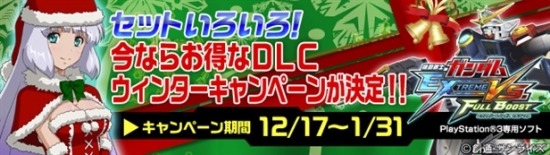 NAMCO BANDAI GAMES好評發售中PS3専用遊戲「機動戰士鋼彈 EXTREME VS. FULL BOOST」,將自12月17日(三)起限期舉辦可以購買各種發售中DLC(追加下載內容)超值套組的冬季特惠活動。