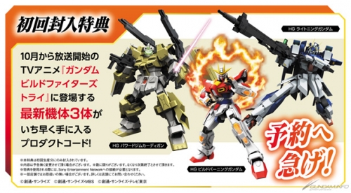 而初回特典是產品序號,可以搶先拿到在『鋼彈創鬥者TRY』中登場的3台最新機體。