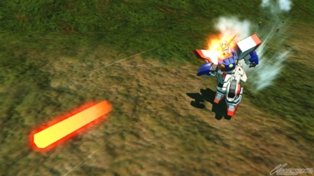 ▲發射1發超級火箭砲的鋼彈X形態副射擊。命中後可以擊倒對手喔。