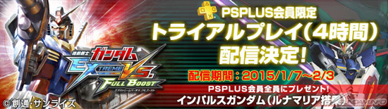由日本亞洲索尼電腦娛樂股份有限公司提供的付費服務「PlayStation Plus」(以下簡稱PS PLUS),即將從明天1月7日(三)起發布PS3「機動戰士鋼彈EXTREME VS. FULL BOOST」的試玩版。