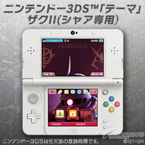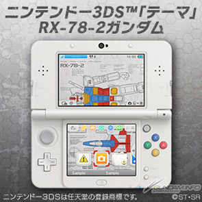 由BANDAI NAMCO GAMES推出,對應任天堂3DS的佈景主題「[機動戰士鋼彈]RX-78-2 鋼彈」、「[機動戰士鋼彈]薩克II(夏亞専用)」正好評提供下載中。