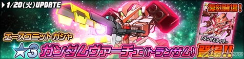 王牌機體轉蛋中,有「★3 德天使鋼彈(TRANS-AM)」和「★3 TRANS-AM RAISER」為首的許多強力機體登場。。