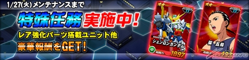 特殊任務「OP晶片奪還作戰」是以打到在限期地圖中登場的強力敵人,獲得「OP晶片」為目標。只要進入地圖執行任務,就能獲得「★2 神龍鋼彈」和「★2 張 五飛」等豪華報酬。