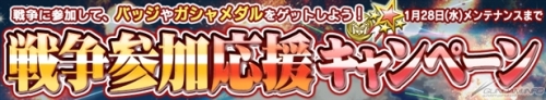 除了有毎天能拿到1枚紀念代幣的「登入活動」外,還同時舉辦了「戰爭參加支援活動」、「支援效果上升活動」、「技能學習率提升活動」,合計4個活動。