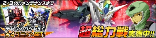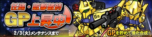 自今天1月27日(二)起,將同時舉辦「強力卡片GET!★3以上機體保証活動」、「任務、擊破敵人時獲得GP增量活動」、「小隊壓制戰‐宇宙戰」等活動。