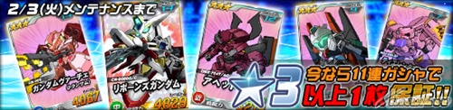 除此之外,王牌機體轉蛋也追加了「★4 再生鋼彈」等強力機體,還同時舉辦「強力卡片GET!★3以上機體保証活動」等三項優惠活動。