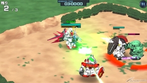 「SD鋼彈 STRIKERS」是只需透過1根手指就可隨心所欲地操縱MS,率領最多3機編成的己方部隊攻略各種任務的小隊戰鬥動作遊戲。