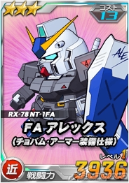 王牌機體轉蛋中,有「★4 鋼彈」、「★4 G-3鋼彈」、「★4 吉翁克」、「★3 FA亞力克斯(複合裝甲裝備型態)」等強力機體登場。