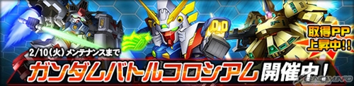 今天2月3日(二)起,同時開始「鋼彈戰鬥競技場」和「獲得PP增量活動」。