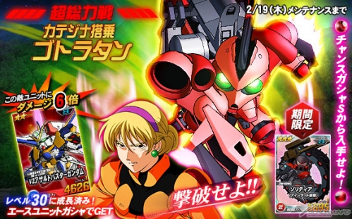 超總力戰到2月19日(四)為止的限定期間內將會有「卡堤珍娜駕駛的葛拉坦」登場,活動期間中進行任務的同時,有機會遭遇「卡提珍娜駕駛的葛拉坦」。