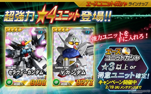 且除了在王牌機體轉蛋中追加「★4 熾天使鋼彈」、「★4 ∀鋼彈」以外,並同時開始「★3以上 or 得意機體確定活動」和「情人節活動」等3個活動,將一起來介紹。