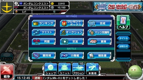 GUNDAM CONQUEST 收費模式 : 免費下載、商城模式 對應機種 : iPhone 4、iPhone 4S、iPhone 5、iPhone 5s、iPhone 5c、iPad(第3世代、第4世代)、 iPad mini、iPod touch(第5世代),iOS4.3以上、Android 2.3以上 ※部份機種除外 上架開始 : 2013年12月10日 |