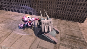 從吉翁公國軍連同武裝一起接收的薩克II F2型。有著許多強大火力武裝的反面,整體的機動力偏低。