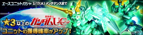 活動期間中,「王牌機體轉蛋」以及「11連王牌機體轉蛋」中出現的『機動戰士鋼彈UC』系列機體,「★3」以上機體的釋出機率將會上升。